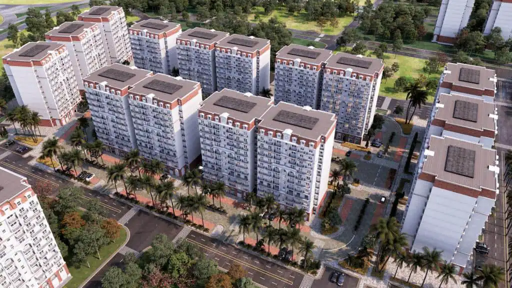 Residential buildings have also been built for the site's employees (such as doctors, supervisors, teachers and policemen). The buildings consist of two land houses and two recurring buildings with a total of 40 units with 480 housing units in different areas (85 m - 120 m), in addition to establishing all the service facilities needed by farms in the new Egyptian countryside where 29 service facilities are under construction, and these service buildings (3 schools each with 28 classrooms) - 3 nurseries per nursery containing 3 classes - 3 health units - Police station - veterinary unit - 3 commercial markets with a total of 148 shops containing all the shops needed by the residents in the residential community - Irrigation Department, Agricultural Bank, Agricultural Company, manual workshop building containing 20 women's and girls' workshops Post office, Social Council building, 9 mosques, 1900 worshippers' mosques, distributed to 3 villages.